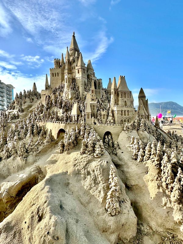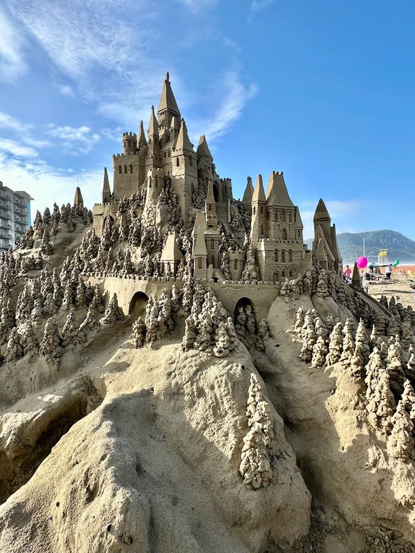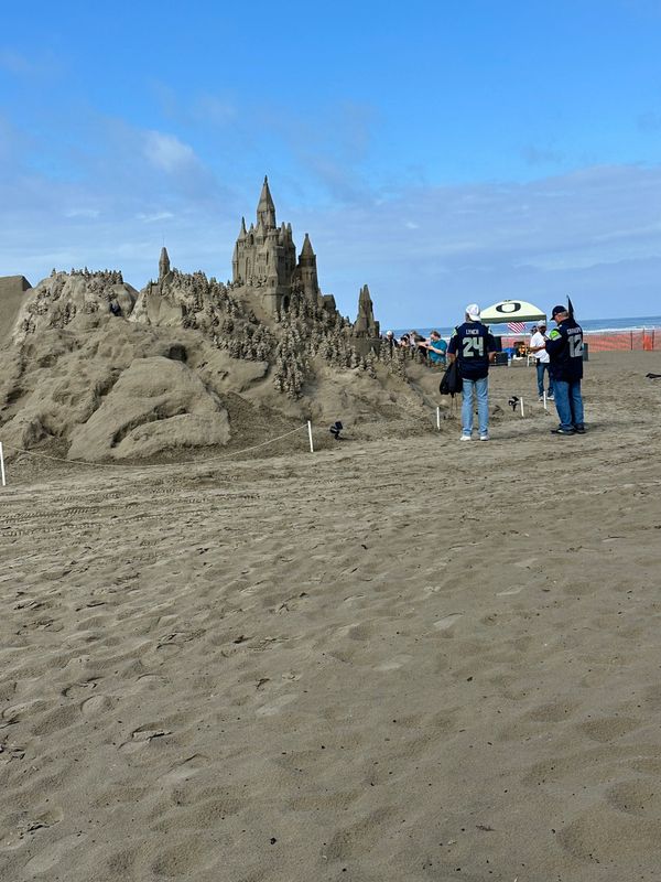Sand Fest Sea side Oregon 2025 scotty Dodson and terii sandcastle Hugh sandcastle 45 tons of sand